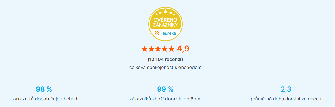 Hodnocení sbíráme na nezávislých srovnávačích, jako jsou Heureka nebo Zboží, ale také na našem profilu na Google nebo největším českém katalogu firem Firmy.cz. Na těchto nezávislých stránkách najdete autentické zkušenosti vás, našich zákazníků.